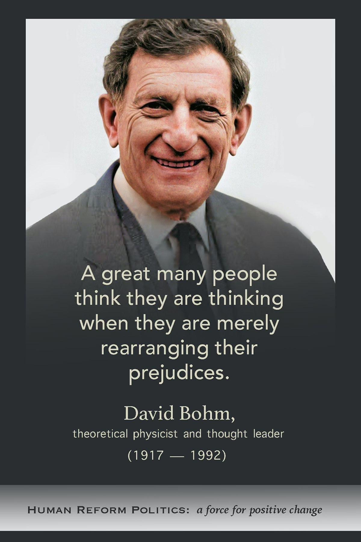 He gives us a framework in which we can live life alive. Bohm shows us how to flow with energy that arises prior to conditioned thoughts and concepts.