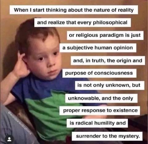 Alas, we are swirling in a an unfurling mystery. Absolute knowing is perhaps thinkable, though not livable.