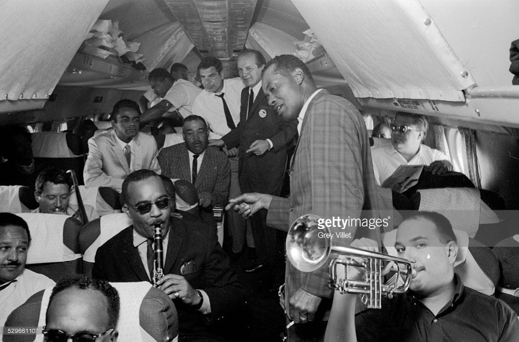 I begin to more fully absorb the notion that this is way more than just another show. The plane is called “The Spirit of 76,” so named for the 76 passengers in flight to perform the “first integrated variety show to play before a non-segregated audience in Birmingham, Alabama.” Indeed, anywhere in the Deep South. A pivotal event in civil rights history energized by the arts and entertainment. Especially the spirit of music.